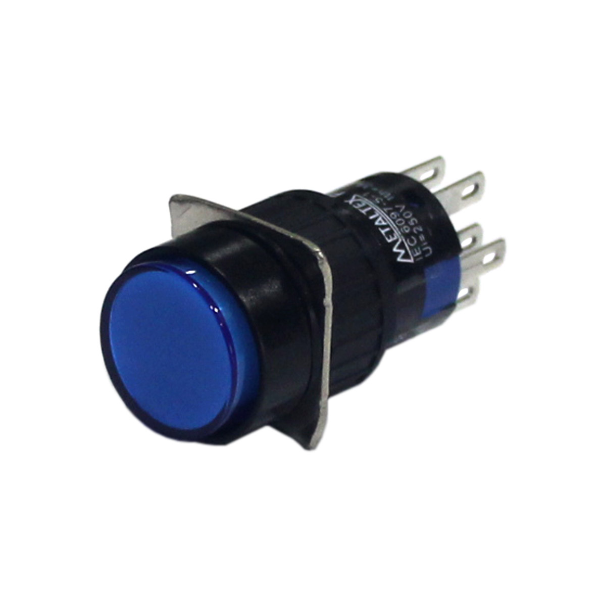 Botão de Comando Redondo com Retenção Iluminado Metaltex P16-IR2-BL2