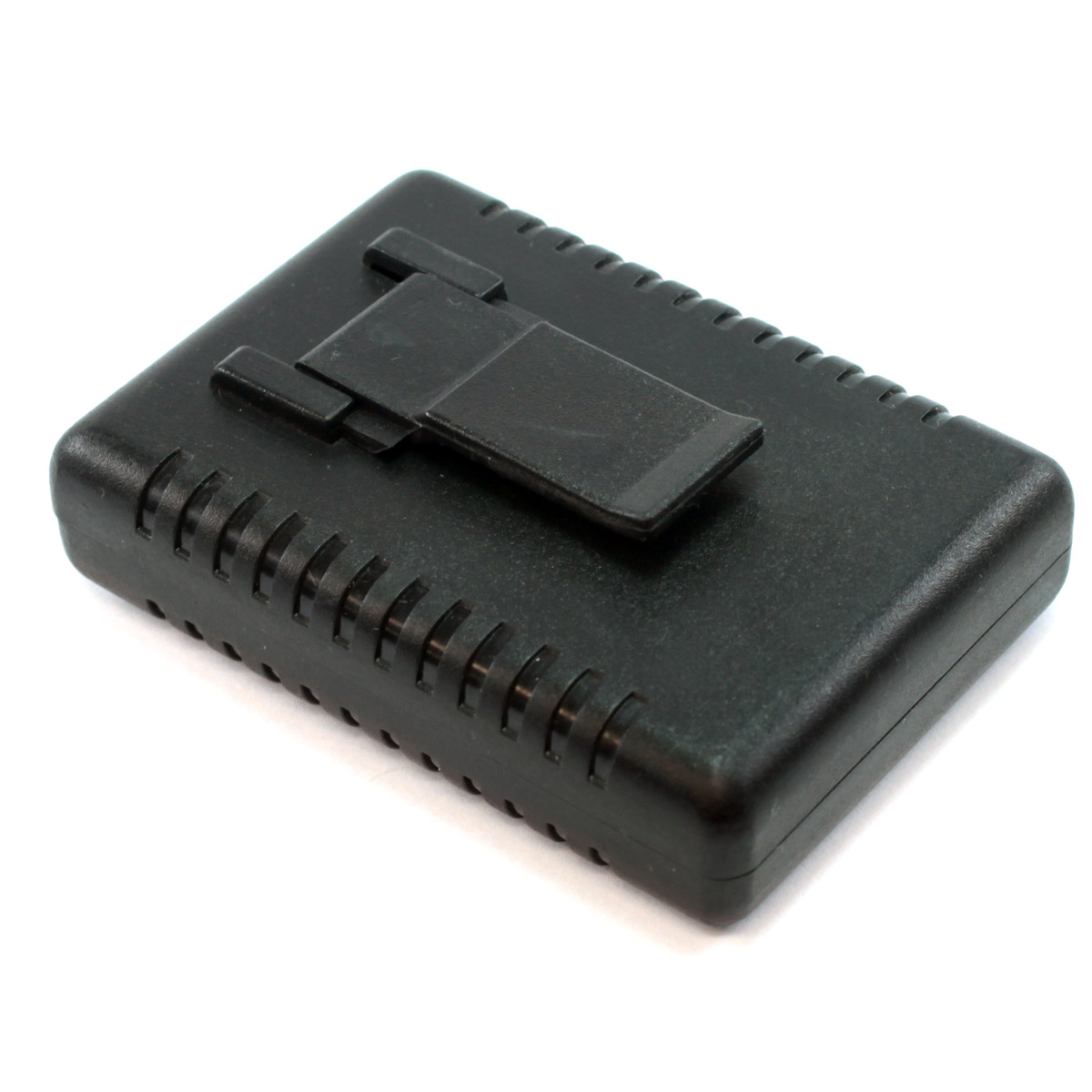 Caixa plástica fabricada em ABS, possui alojamento para bateria, suporte para transporte alto ou baixo, espaço para gravação de logotipo e fixação por 1 parafuso central.