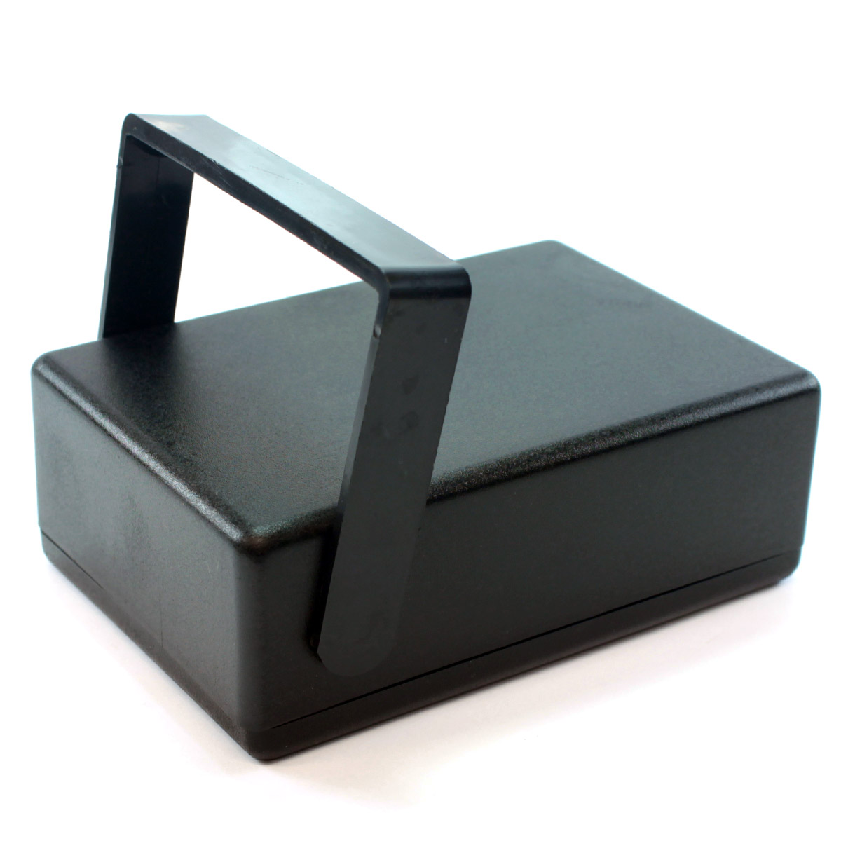 Caixa plástica fabricada em ABS, possui guias e torres para fixação da placa de circuito impresso, fixação da tampa por parafusos, alça para transporte do produto, compartilhamento para pilha ou bateria e abertura para ventilação. Obs: não fornecemos os parafusos.