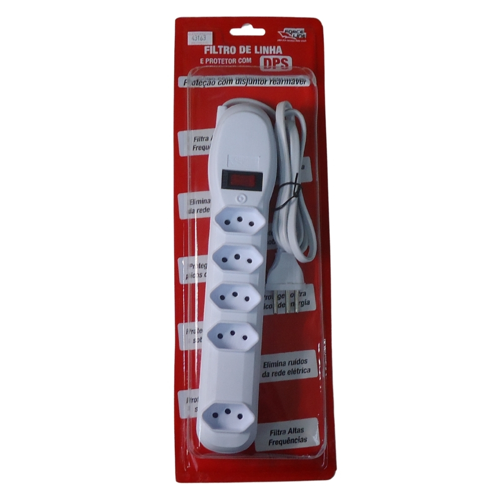 Filtro de Linha 5 Tomadas Bivolt 10A Branco Force Line 5000