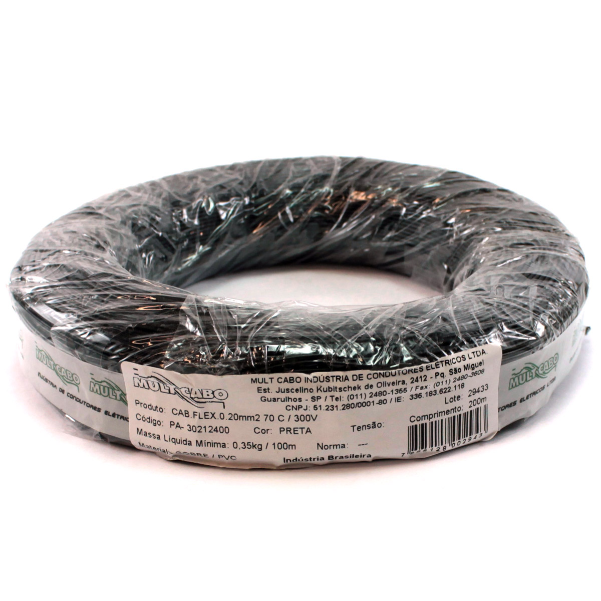 Fio Cabinho Flexível N 24 0,20 mm² Preto Mult Cabo rolo com 200 mts