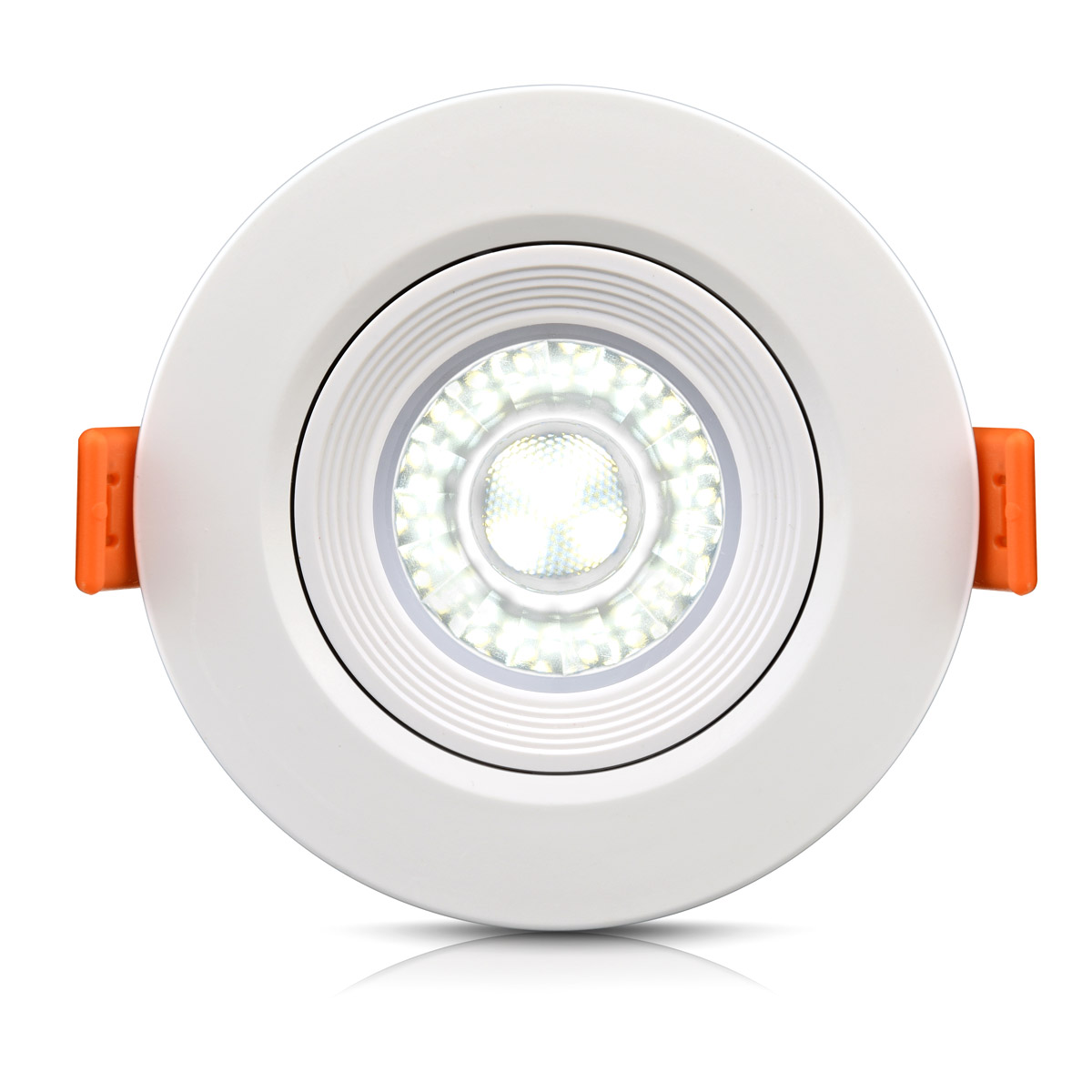 Luminária de embutir redonda LED, tipo spot direcionável, equivalente à dicróica, com lente para facho de 38°.