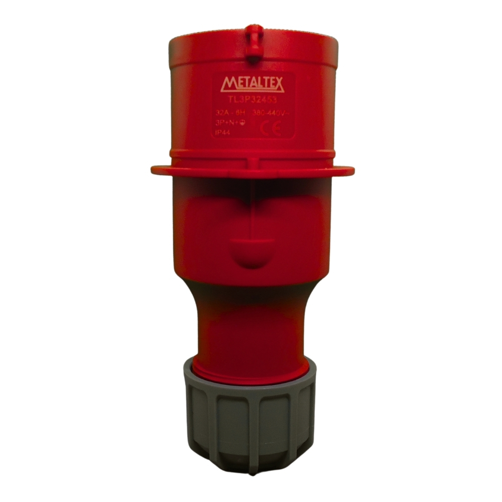 Plugue macho com partes plásticas de poliamida (PA6) auto extinguível e com proteção UV. Tensão máxima de trabalho 690Vrms e temperatura de operação de -25 a 120°C.
