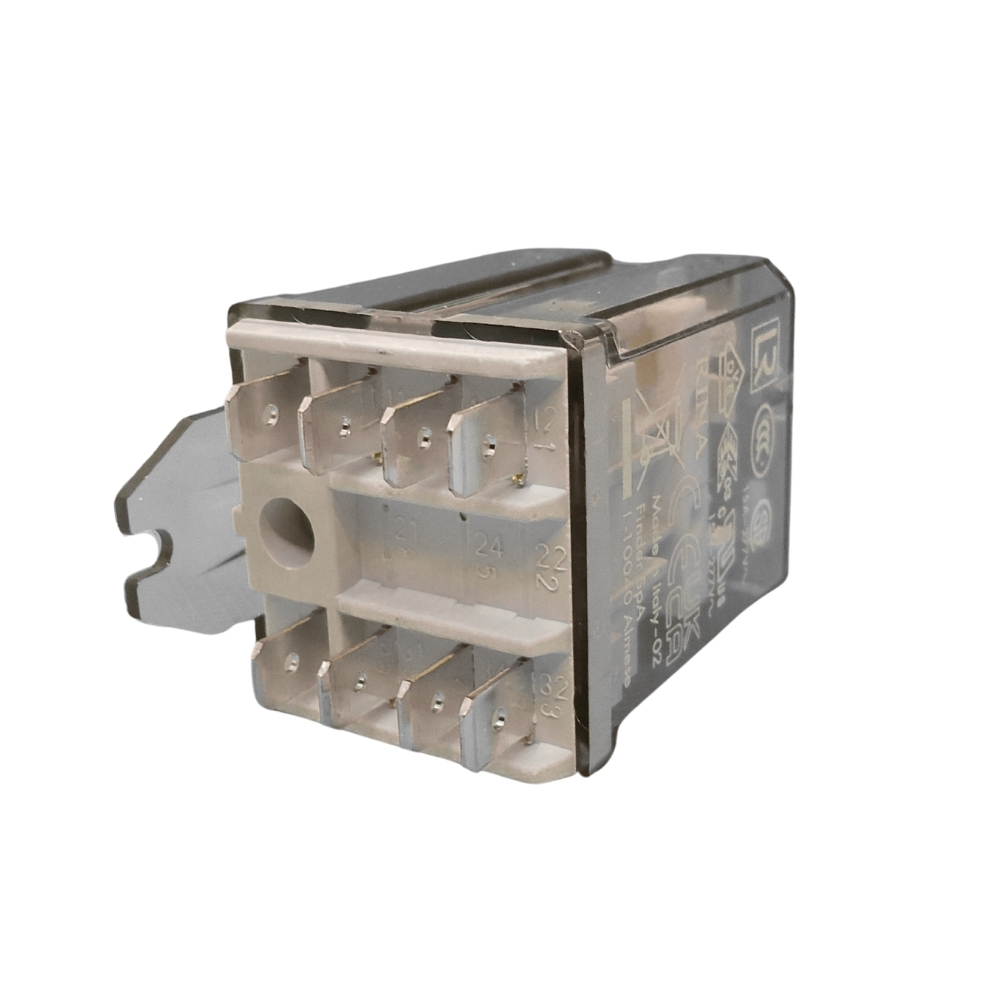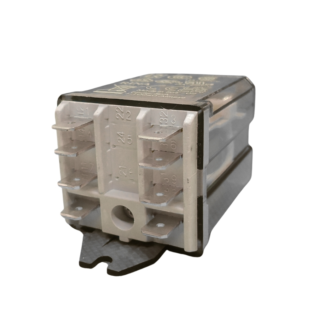 Relé de potência com aletas de fixação/faston 250, 2 contatos reversíveis 16A.