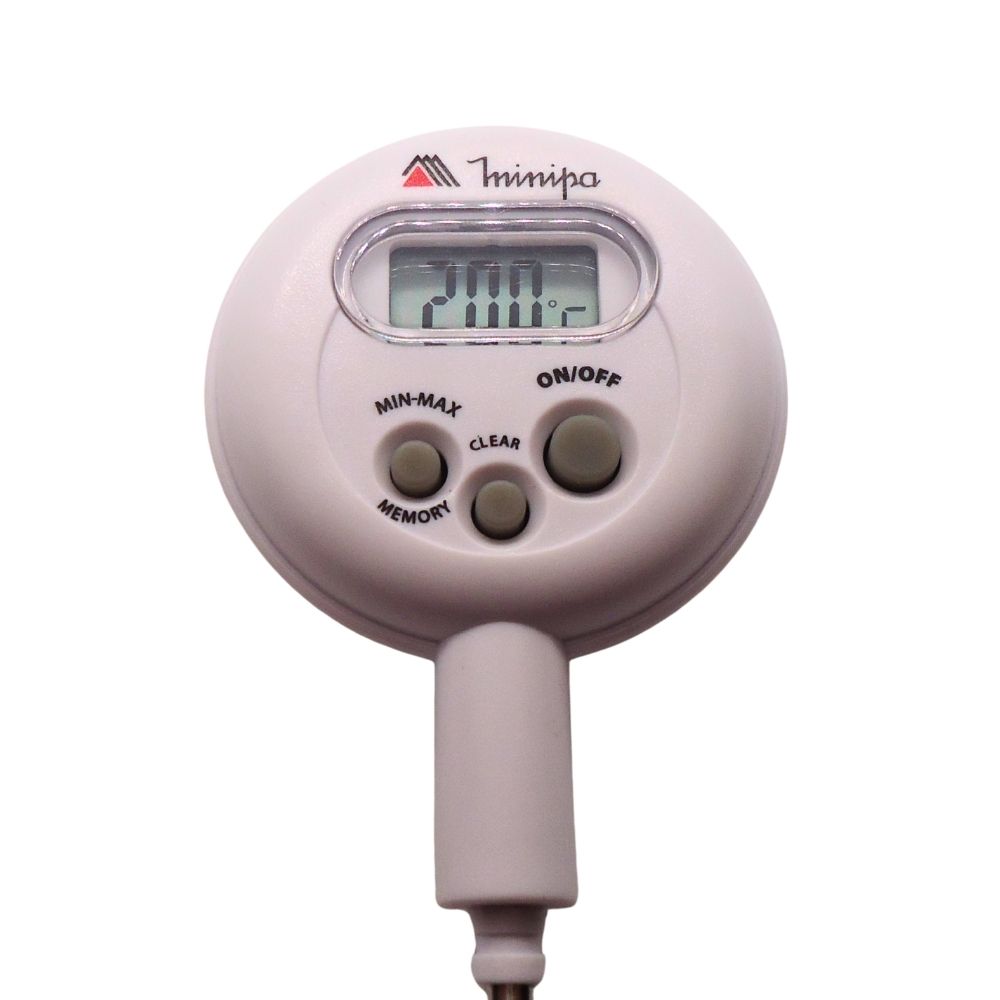 Utilizado para medidas de temperatura de alimentos. Possuindo sensor de aço inoxidável, pode ser utilizado para medir a temperatura de cozimento e temperatura de assados sendo aplicável para vários campos como: refrigeração, aquecimento, processamento de alimentos, processamento de borracha e plástico.