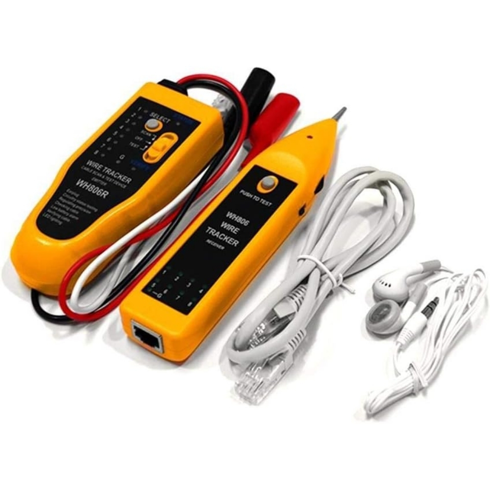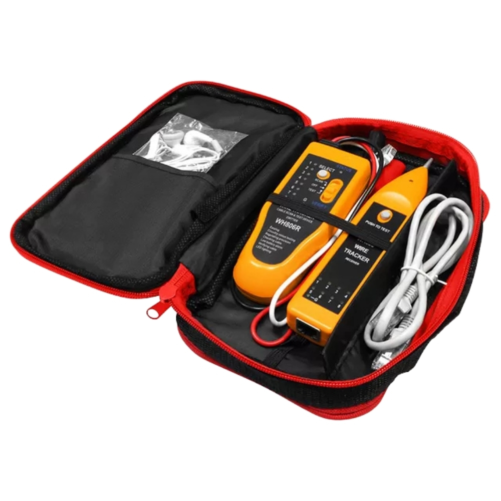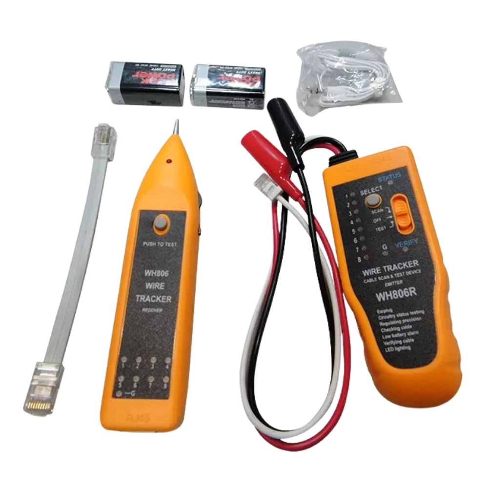 O Testador, localizador de cabos WH806R é um equipamento desenvolvido para rastrear e identificar pares de cabos em instalações de telefonia e redes de computadores. Com ele, é possível realizar essas tarefas sem a necessidade de retirar o isolamento dos condutores ou danificar o isolamento.